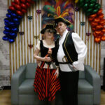 W tym roku karnawał zakończyliśmy zabawą kostiumową, połączoną z Walentynkami. Oprawę muzyczną zapewniał DJ Lisek, z którym bawiliśmy się również na Andrzejkach. DJ rozpoczynał zwykle cykl muzyczny spokojnym tangiem lub walcem z lat naszej młodości aby z każdym utworem przyspieszać i poprzez rytmy cha-cha-cha i rock-and-roll’a sprawdzać taneczną kondycję seniorów. Znane i lubiane utwory wprowadziły nas w miłą i przyjazną atmosferę.
